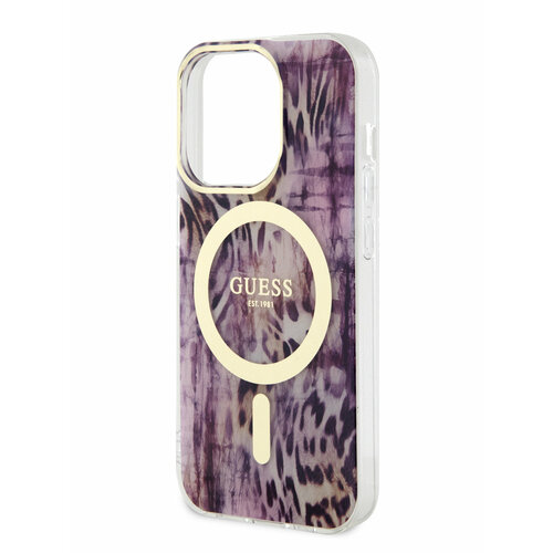 Guess для iPhone 14 Pro Max чехол PC/TPU Leopard Hard Pink/Gold (MagSafe)