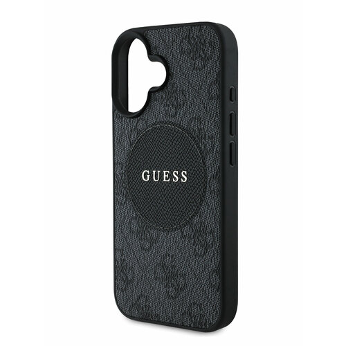 Guess для iPhone 16 чехол PU 4G with Round Patch Metal logo Hard Black (MagSafe)