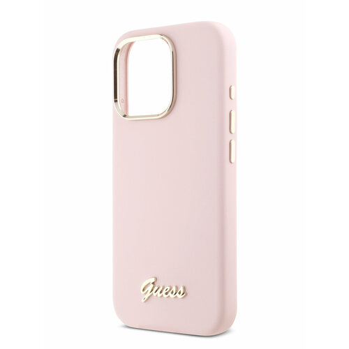 Guess для iPhone 16 Pro Max чехол Liquid silicone Gold metal logo & Camera frame Hard Pink