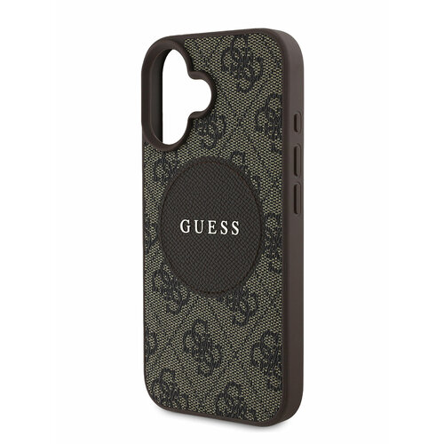 Guess для iPhone 16 чехол PU 4G with Round Patch Metal logo Hard Brown (MagSafe)