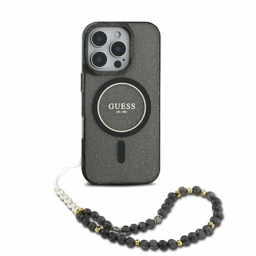 Чехол CG Mobile Guess для iPhone 16 Pro Max PC/TPU Glitter Hard + Pearl Hand Strap Black (MagSafe)