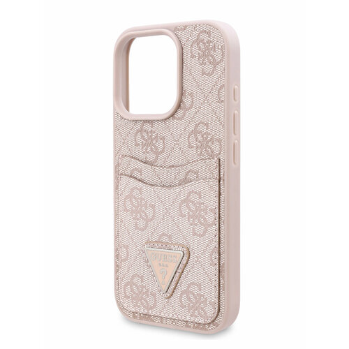 Guess для iPhone 16 Pro чехол PU 4G Double cardslot Triangle metal logo Hard Pink