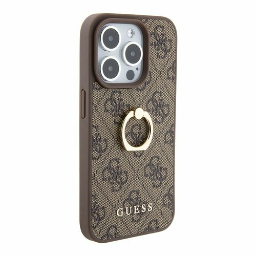Guess для iPhone 16 Pro Max чехол PU 4G + Ring Hard Brown
