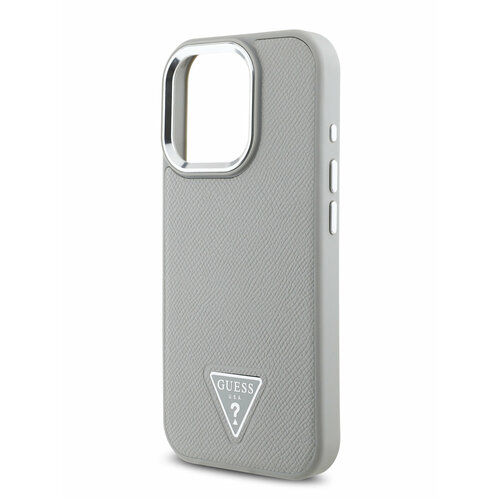 Guess для iPhone 16 Pro чехол PU Grained leather Triangle metal logo Hard Beige (MagSafe)