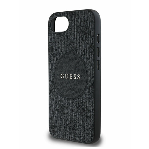 Guess для iPhone 16e чехол PU 4G with Round Patch Metal logo Hard Black (MagSafe)
