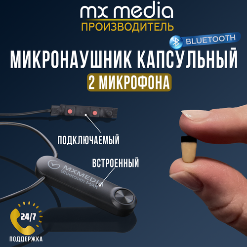 Микронаушник капсульный Mxmedia Bluetooth Pico MAX с 2 микрофонами (встроенный и подключаемый с кнопкой-пищалкой)