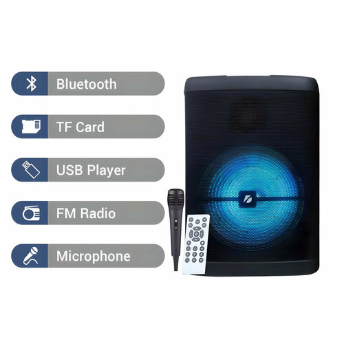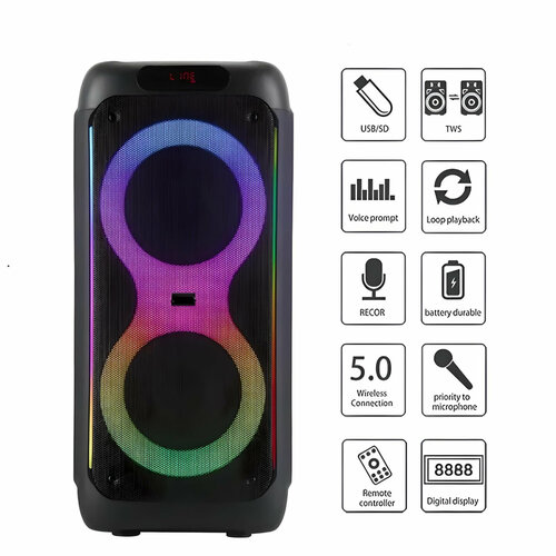 Колонка акустическая портативная (Караоке)TWS/пульт/микрофон/bluetooth/AUX/Usb/FM/Аудио вход/пиковая мощность 6800W