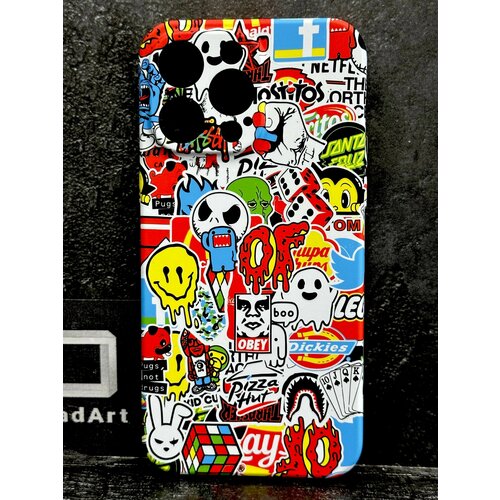 Светящийся чехол-накладка для Iphone 15 pro LUXO/KAWS/ разноцветный рисунок