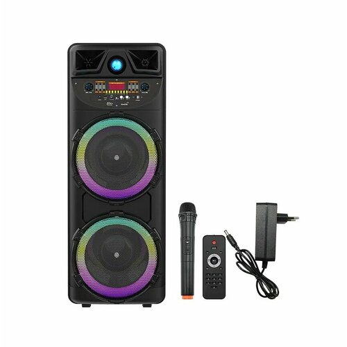 Колонка акустическая портативная комбоусилитель (Караоке) RX-6238 /светодиодная подсветка/пульт/2 микрофона/bluetooth/ AUX/Usb/FM/Аудио вход