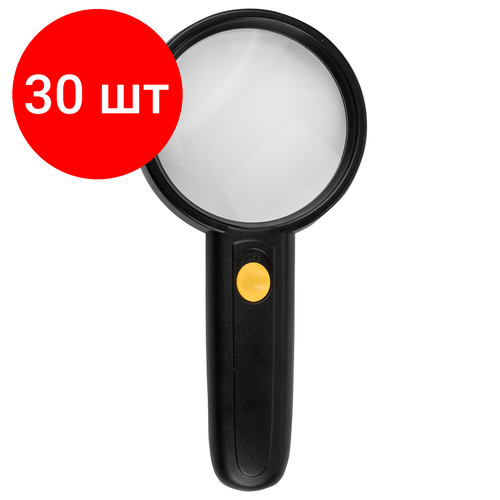 Комплект 30 шт, Лупа просмотровая BRAUBERG, С подсветкой, диаметр 75 мм, увеличение 3, корпус черный, 454130