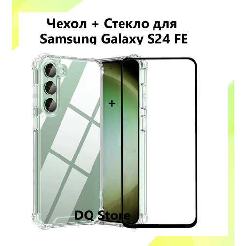 Комплект 2 в 1: Прозрачный противоударный cиликоновый чехол + защитное стекло для Samsung Galaxy S24 FE / Самсунг Гэлакси С24 ФЕ. Бампер с защитой камеры и усиленными углами.