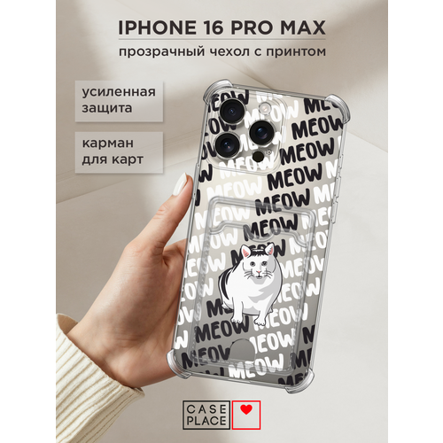 Чехол на Apple iPhone 16 Pro Max (Айфон 16 Про Макс) с картой и принтом Кот мем
