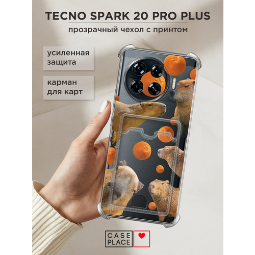 Чехол на Tecno Spark 20 Pro Plus (Текно Спарк 20 Про Плюс) с картой и принтом Капибара