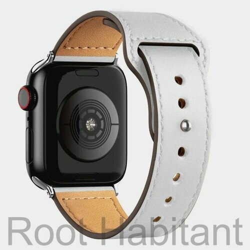 Кожаный ремешок для Apple Watch 3 4 5 6 7 8 9 SE Ultra, в корпусах 42, 44, 45, 49. Белый / White