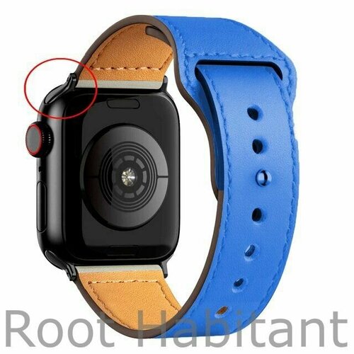 Кожаный ремешок для Apple Watch 3 4 5 6 7 8 9 SE Ultra, в корпусах 38, 40, 41, 42 серия 10. Синий / Blue BF (Черная фурнитура)