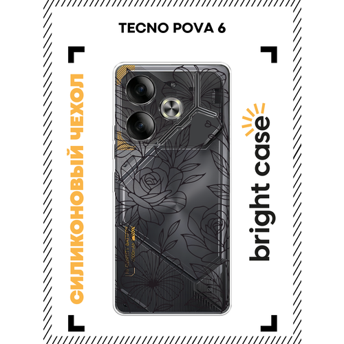 Чехол на Tecno Pova 6 / Техно Пова 6 с принтом Контуры цветов, прозрачный