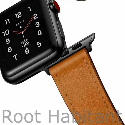 Кожаный ремешок для Apple Watch 3 4 5 6 7 8 9 SE Ultra, в корпусах 42, 44, 45, 49. Светло-Коричневый / Неrmеs Brown BF (Черная Фурнитура)