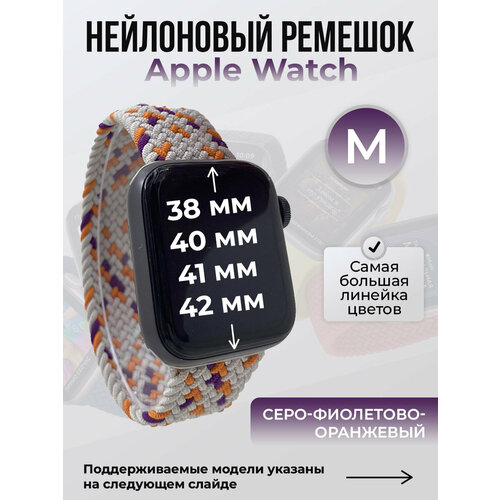 Нейлоновый ремешок для Apple Watch 1-9 / SE (38/40/41 мм), без застежки, серо-фиолетово-оранжевый, размер M