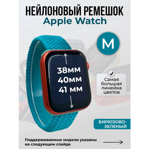 Нейлоновый ремешок для Apple Watch 1-9 / SE (38/40/41 мм), без застежки, бирюзово-зеленый 2, размер M
