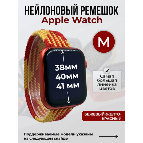 Нейлоновый ремешок для Apple Watch 1-9 / SE (38/40/41 мм), без застежки, бежевый-желто-красный 2, размер M