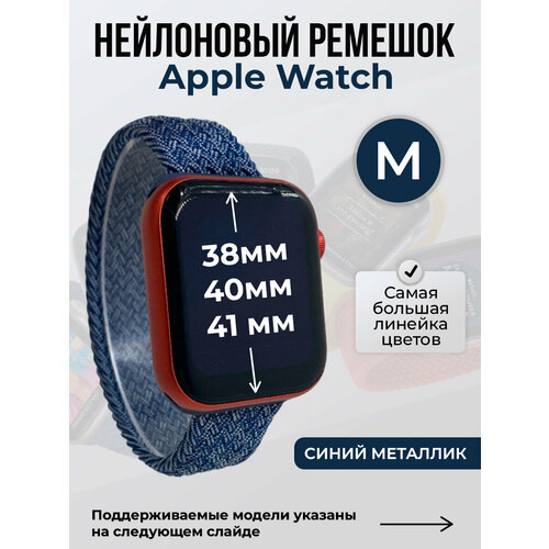Нейлоновый ремешок для Apple Watch 1-9 / SE (38/40/41 мм), без застежки, металлик 2, размер M