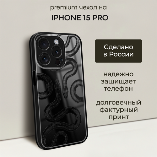 Чехол на Apple iPhone 15 Pro / Айфон 15 Про с объемным принтом "Две змеи"