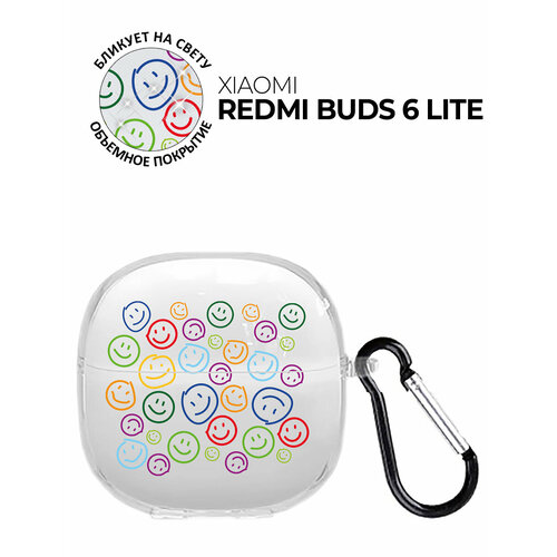 Чехол на Xiaomi Redmi Buds 6 Lite с принтом "Паттер смайлов" прозрачный
