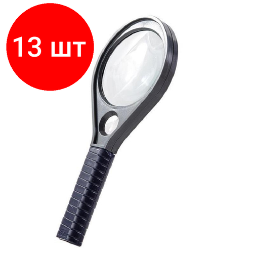 Комплект 13 штук, Лупа офисная Deli E9090 d=75мм x2.5(х5), упак. блистер