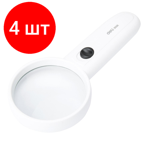 Комплект 4 штук, Лупа офисная Deli E9098 d=60мм x3.5 LED подсветка, упак. блистер