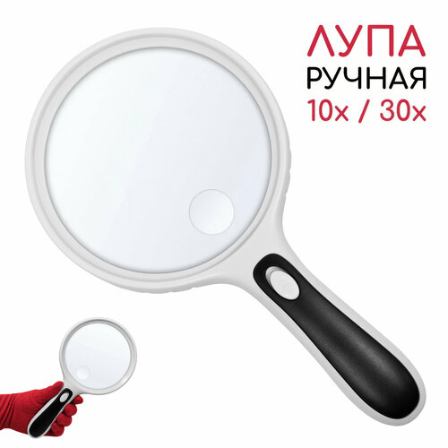 Лупа с 10 кратным увеличением большого диаметра 10х/30х с подсветкой 130мм (прмт-103347) белая