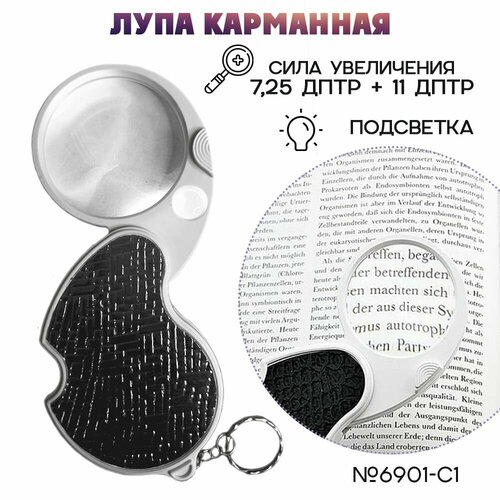 Лупа увеличительная складная с подсветкой 6901C1, 60 и 12 мм