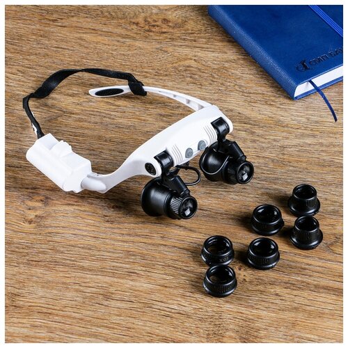Лупа налобная 10-25х бинокулярная, с подсветкой, 6 линз в комплекте, 3 ААА 2355544