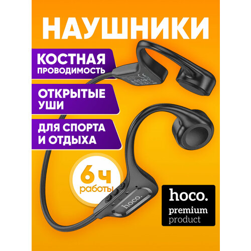 Беспроводные наушники с костной проводимостью HOCO DM43, черные / Беспроводная Bluetooth-гарнитура для занятия спортом / Накладные беспроводные наушники для бега с микрофоном, влагозащищенные IPX6