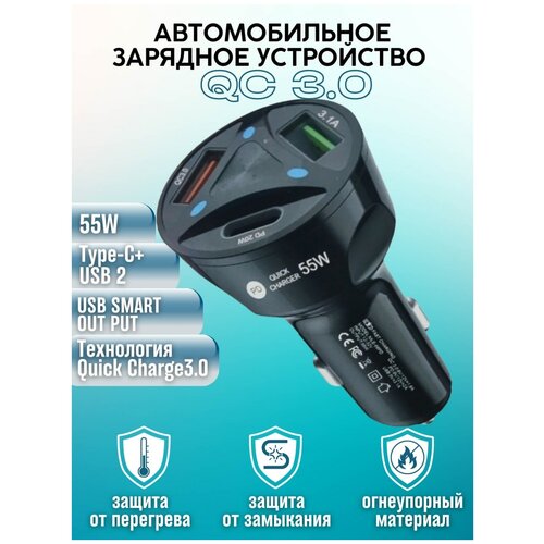 Автомобильное зарядное устройство 3 USB QC3.0 в прикуриватель с быстрой зарядкой 6,1A / в авто