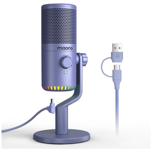MAONO Игровой микрофон, usb-радиомикрофон для компьютера и мобильного телефона, микрофон с rgb-подсветкой фиолетовый, синий, violet, голубой