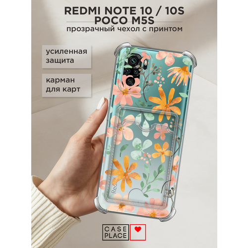 Чехол на Xiaomi Redmi Note 10/10S/Poco M5s (Редми Нот 10/10S/Поко M5s) с картой и принтом Цветочки и стебли