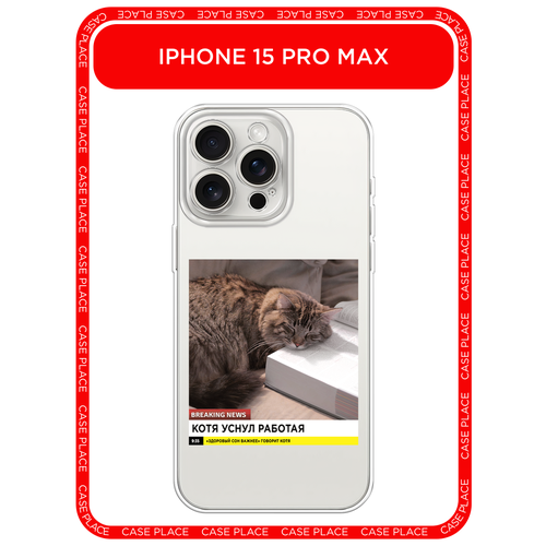Чехол на Apple iPhone 15 Pro Max / Айфон 15 Про Макс с принтом Кот уснул работая, прозрачный