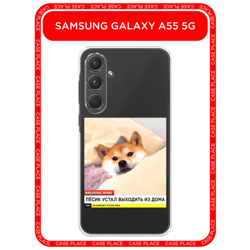 Чехол на Samsung Galaxy A55 5G / Самсунг Галакси А55 5G с принтом Уставший песик, прозрачный