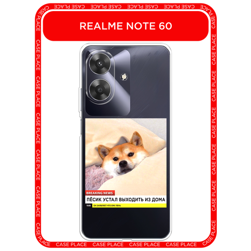 Чехол на Realme Note 60/60X / Реалми Нот 60/60X с принтом Уставший песик, прозрачный