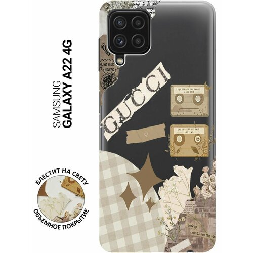 Силиконовый чехол на Samsung Galaxy A22, M32, M22, Самсунг А22, М32, М22 с 3D принтом "GUCCI Stickers" прозрачный