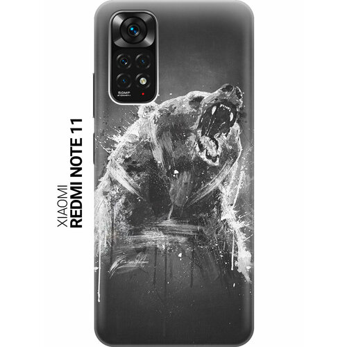 Силиконовый чехол на Xiaomi Redmi Note 11, Note 11S, Сяоми Редми Ноут 11, Ноут 11С с принтом "Разъяренный медведь"