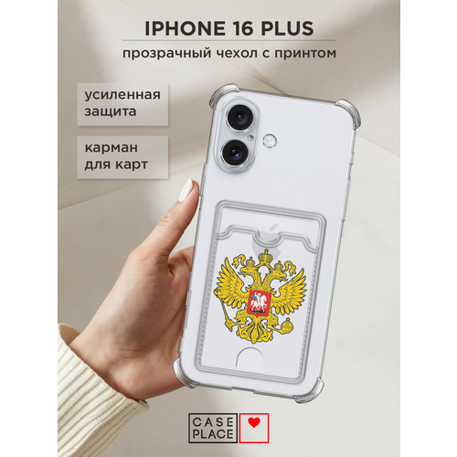 Чехол на Apple iPhone 16 Plus (Айфон 16 Плюс) с картой и принтом Герб Россиии
