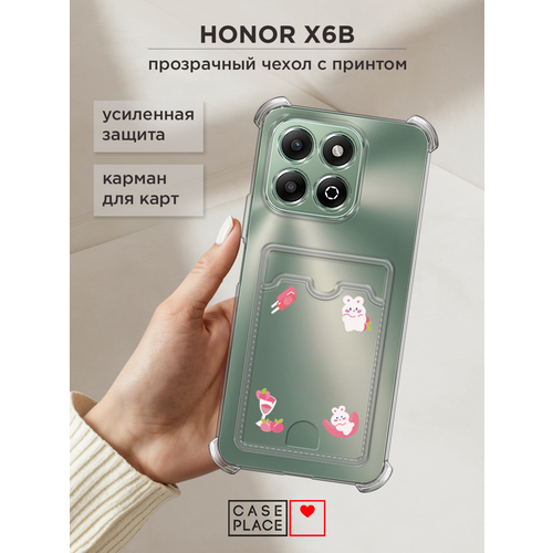 Чехол на Honor X6b (Хонор X6b) с картой и принтом Милый корейский кролик