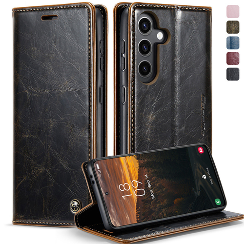 Чехол-книжка MyPads для Samsung Galaxy S24 Ultra из натуральной кожи. Коричневый