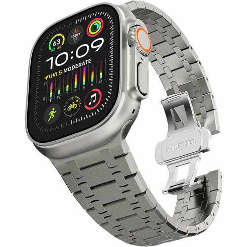 Ремешок для Apple Watch Ultra/Ultra2 49mm, изготовлен из нержавеющей стали 304 с дизайном бабочка-застежка, стильный и комфортный.