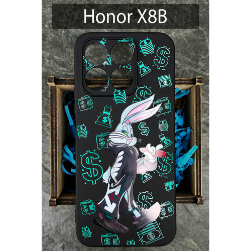 Силиконовый защитный чехол на Honor X8b с принтом Заяц Бани неон Хонор Х8Б