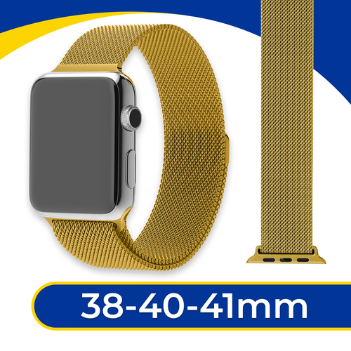 Металлический ремешок на Apple Watch 1-9, SE 38-40-41 мм / Браслет миланская петля для смарт часов Эпл Вотч 1, 2, 3, 4, 5, 6, 7, 8, 9, СЕ / Золотой
