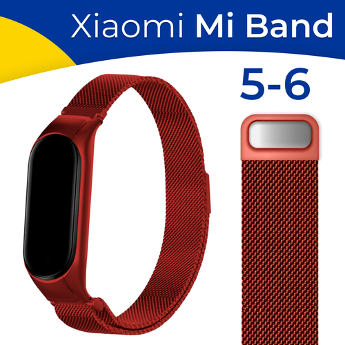Металлический ремешок для Xiaomi Mi Band 5, Mi Band 6 / Ремешок на Сяоми Ми Бэнд 5, 6 / Красный