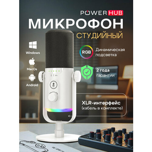 Микрофон студийный игровой для ПК/iPhone/Android с RGB-подсветкой