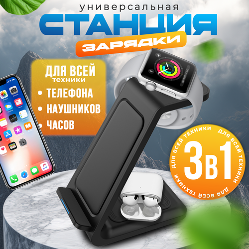 Беспроводная зарядка для iPhone и Android, станция 3 в 1